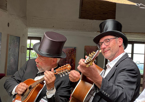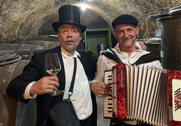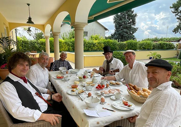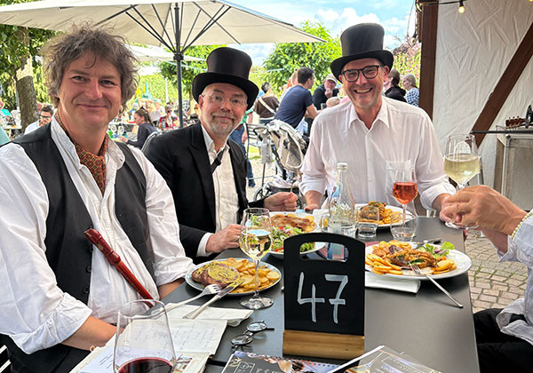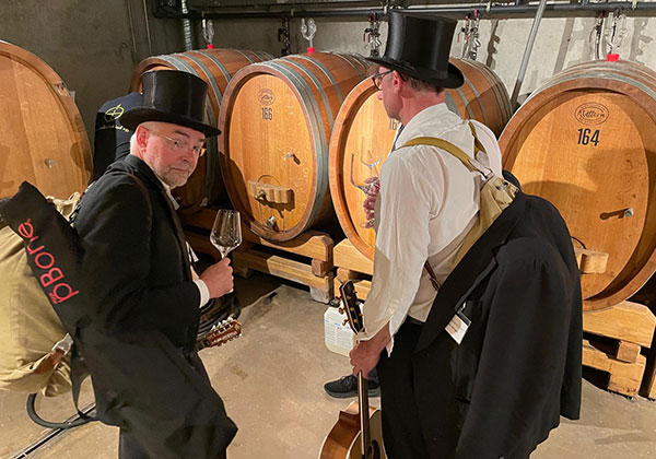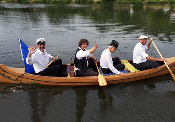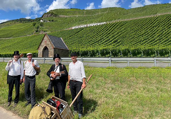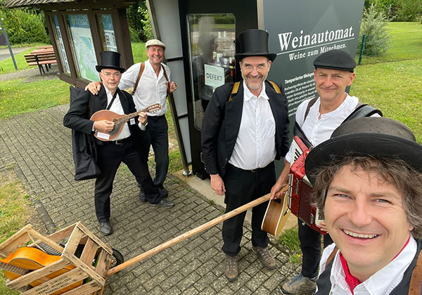 Nun wird seit über fünfundzwanzig Jahren eine Woche im Sommer landgestrichen. Mit Instrumenten und Gesang erkunden die mittlerweile zu Oberlandstreichern beförderten Herren die deutschen Weinlandschaften. Seit einigen Jahren wurden auch die Nachbarländer bereist. Egal ob Main oder Mosel, Elsass, Südsteiermark, Rheingau, Markgräflerland, Wachau, Südtirol, Pfalz oder das Weinviertel in Niederösterreich - die Landstreicher kennen sich aus und lassen sich nichts vormachen. Insbesondere Romantik Hotels haben es ihnen angetan.