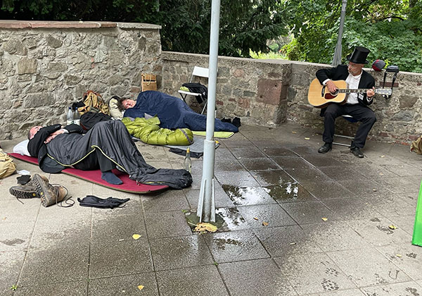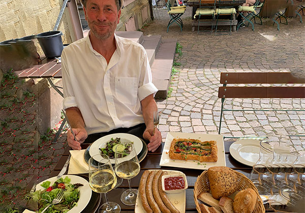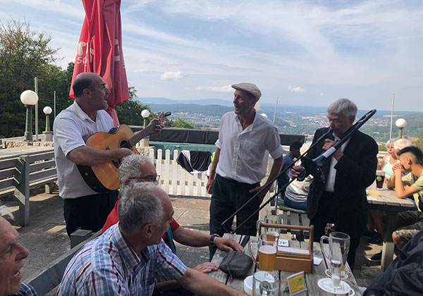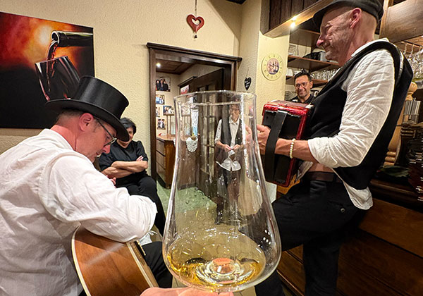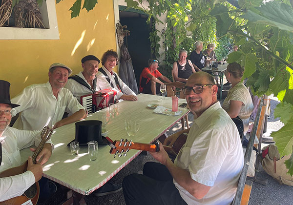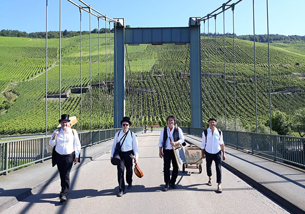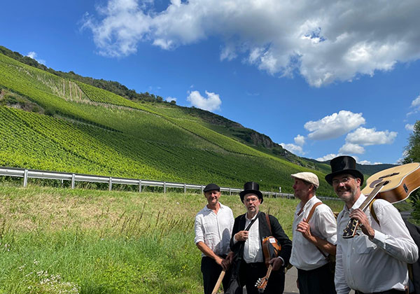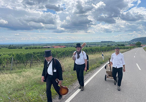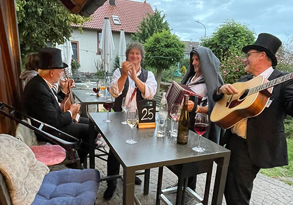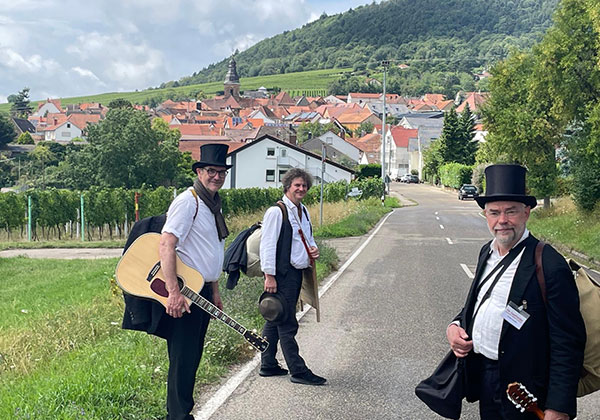 Nun wird seit über fünfundzwanzig Jahren eine Woche im Sommer landgestrichen. Mit Instrumenten und Gesang erkunden die mittlerweile zu Oberlandstreichern beförderten Herren die deutschen Weinlandschaften. Seit einigen Jahren wurden auch die Nachbarländer bereist. Egal ob Main oder Mosel, Elsass, Südsteiermark, Rheingau, Markgräflerland, Wachau, Südtirol, Pfalz oder das Weinviertel in Niederösterreich - die Landstreicher kennen sich aus und lassen sich nichts vormachen. Insbesondere Romantik Hotels haben es ihnen angetan.